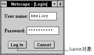 带有“submit”作为 TYPE 属性的 HTML INPUT 标记。对于一个给定的表单,JavaScript 运行时刻引擎将创建一个对应的 Submit 对象并将其放置在对应的 Form 对象的 elements 数组中。你可以通过该数组的索引访问 Submit 对象。你可以使用数值或在提供了 NAME 属性的情况下使用 NAME 索引该数组。