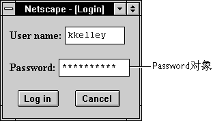 The HTML INPUT tag, with "password" as the value of the TYPE attribute. For a given form, the JavaScript runtime engine creates appropriate Password objects and puts these objects in the elements array of the corresponding Form object. You access a Password object by indexing this array. You can index the array either by number or, if supplied, by using the value of the NAME attribute.